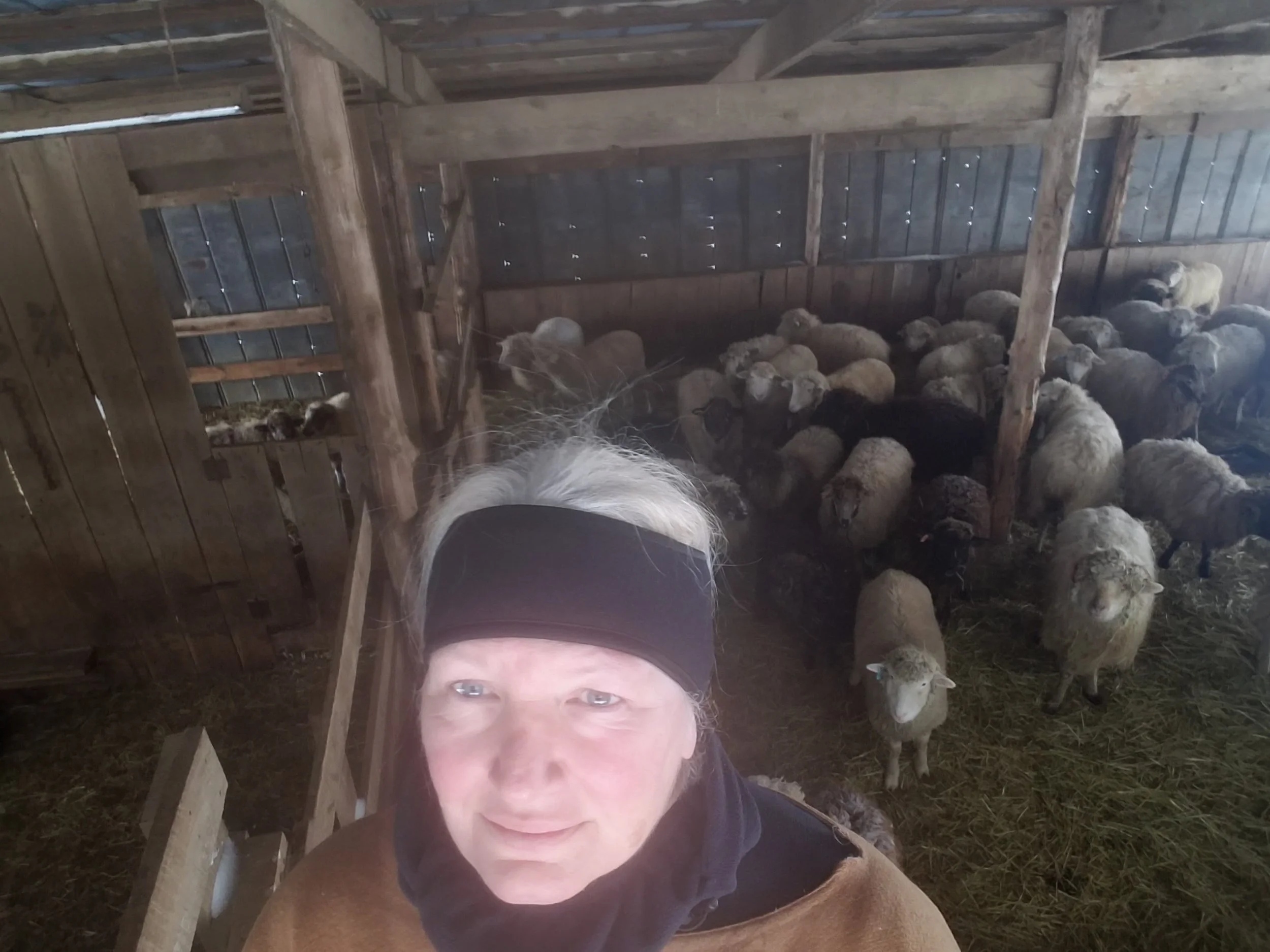 winter on a sustainable sheep farm in Burlington, NC with the shepherd looking in on her eyes in the barn